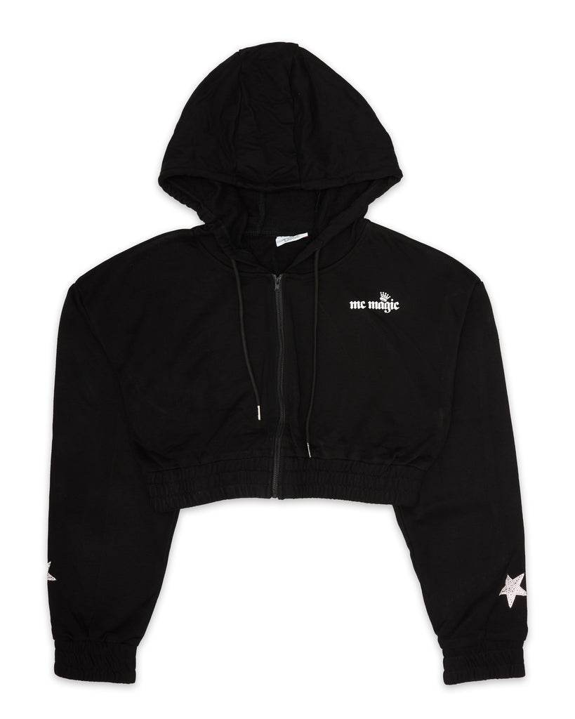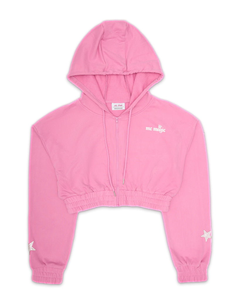 Keep warm and look amazing in our BLACK PINK track suit complete with rhinestone stars on the sleeves & MC Magic rhinestone logo on the butt.Β